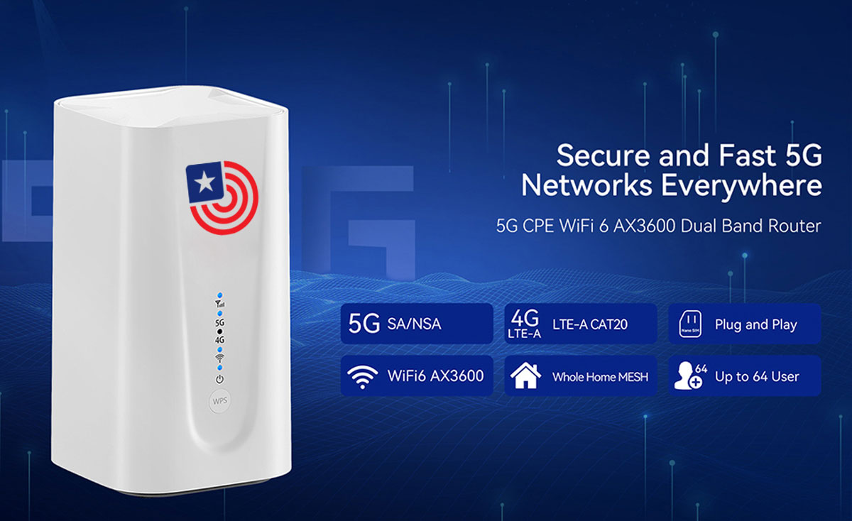 This 5G router WiFi-6 AX3600 CPE adopts the latest Wi-Fi 6 (802.11ax) standard, which can provide more than 3.6Gbps of transmission speed, and uses OFDMA technology to connect more devices at the same time, making online content and game loading smoother.